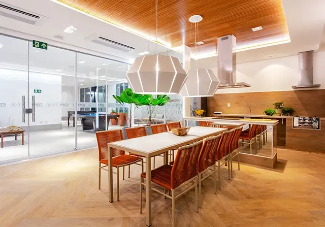 Área comum no 3º pavimento entregue equipada e decorada com móveis e objetos de de alto padrão.